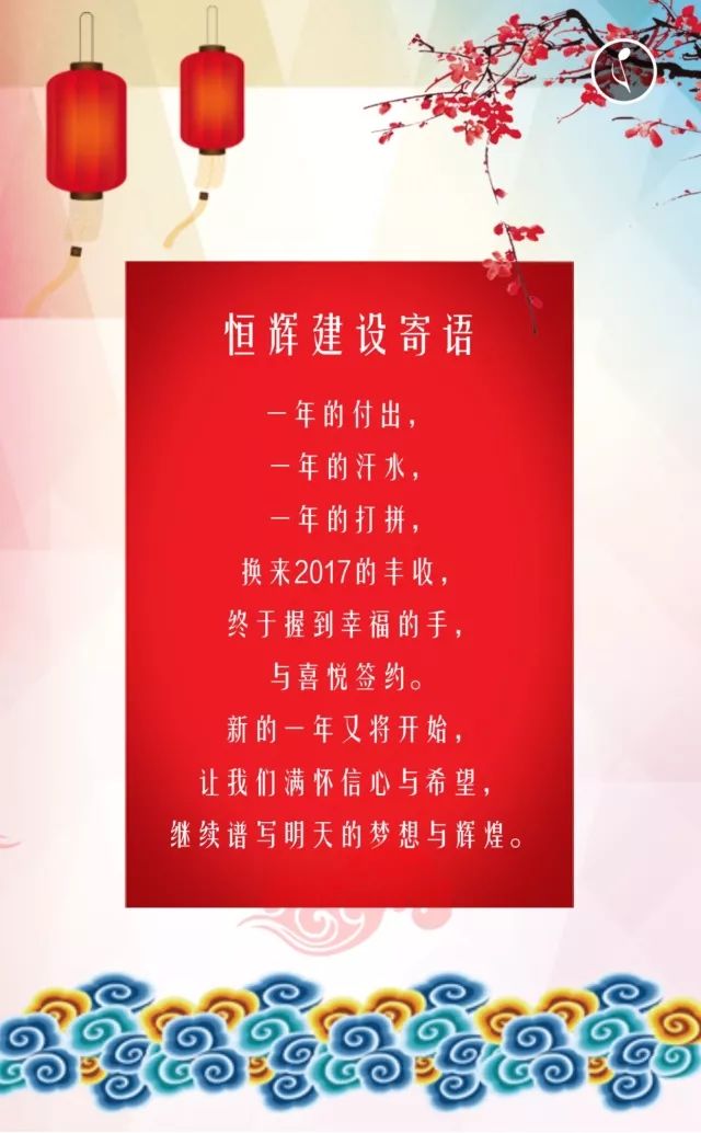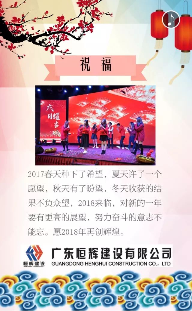 爆竹声声辞旧岁,红梅朵朵迎新春。在新年到来之际,广东恒辉建设有限公司向业界的各位朋友致以诚挚的新年问候,祝愿各位:吉祥如意、财源广进、心想事成、合家欢乐!