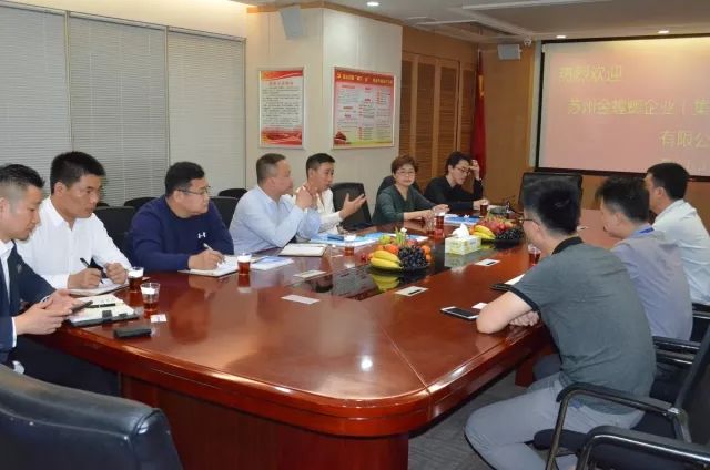 陈董和朱总向来访客人介绍了我司恒辉建设的公司概况,以及发展经营情况、代表性业绩等等。双方围绕绿色施工、项目管理等有关事项进行了沟通和交流。并就苏州金螳螂企业(集团)有限公司现有项目的工程技术问题进行了深入探讨。交流会后,苏州金螳螂企业(集团)有限公司的来宾在我司领导的陪同下,参观了恒辉建设的办场所。
